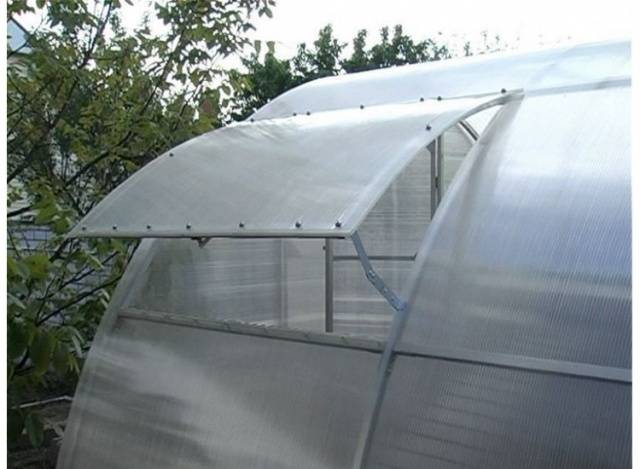 Οι υπερβολικά υψηλές θερμοκρασίες ελέγχονται με το άνοιγμα θυρών ή αεραγωγών σε θερμοκήπιο από πολυανθρακικό.