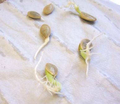 - Σε ένα κομμάτι ύφασμα βρεγμένο με νερό, απλώστε τους σπόρους αγγουριού, καλύψτε τους με ένα δεύτερο υγρό κομμάτι ύφασμα. Το προκύπτον "σάντουιτς" τοποθετείται σε ένα βάζο με πριονίδι στον ατμό με βραστό νερό, έτσι ώστε να καλύπτει το ύφασμα από όλες τις πλευρές.