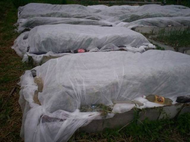 Για να αποφευχθεί η κατάψυξη των κορυφών, τα φυτά πρέπει να καλύπτονται. Για να το κάνετε αυτό, χρησιμοποιήστε πλαστικό περιτύλιγμα ή spunbond.