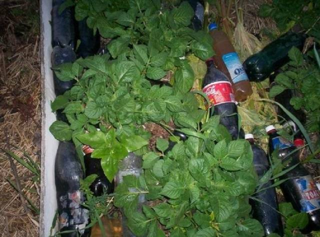 Αλλά για τις πρώιμες πατάτες, αυτή η μέθοδος δεν είναι απολύτως κατάλληλη. Το άχυρο για την προστασία των κορυφών των πρώιμων πατατών αντικαθίσταται με μη υφασμένο υλικό κάλυψης ή πλαστικά μπουκάλια.