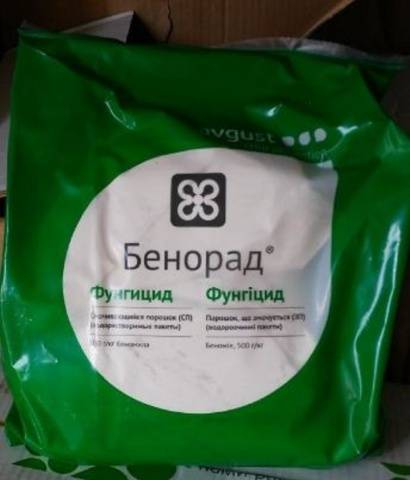 - Συστηματικό μυκητοκτόνο που χρησιμοποιείται κατά τη διάρκεια της καλλιεργητικής περιόδου για δημητριακά, ζαχαρότευτλα. Η χρήση του "Benorad" προστατεύει τα φυτά από πολλές ασθένειες, κυρίως από αυτές που αναφέρονται στην προηγούμενη παράγραφο. Εκτός από την υψηλή αποτελεσματικότητά του, το φάρμακο συγκρίνεται ευνοϊκά με την τιμή του από παρόμοια φάρμακα στην αγορά.