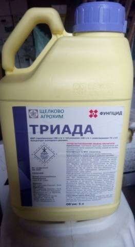 Για όλες τις άλλες μυκητιακές ασθένειες, τα δημητριακά ψεκάζονται με το μυκητοκτόνο Triad κατά τη διάρκεια της καλλιεργητικής περιόδου · ένα εκτάριο καλλιεργειών θα απαιτήσει από 200 έως 400 λίτρα υγρού εργασίας. Για να το προετοιμάσετε, θα πρέπει να καταναλώσετε από 0,5 έως 0,6 λίτρα μυκητοκτόνου. Η πολλαπλότητα της επεξεργασίας είναι 2 φορές. Πρέπει να περάσει ένας μήνας πριν από τη συγκομιδή από τον τελευταίο ψεκασμό.
