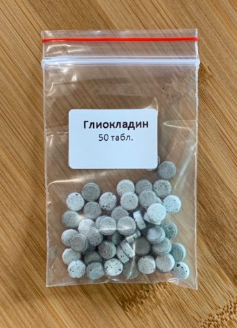 Τα δισκία "Glyokladina" έχουν βιολογική φυλή. Το κύριο συστατικό τους είναι η καλλιέργεια μανιταριών Trichoderma harzianum. Υπό ευνοϊκές συνθήκες, το μυκήλιο του αρχίζει να αναπτύσσεται ενεργά και ο μύκητας που σχηματίζει ασκεί ζωτική δραστηριότητα προστατευτικές δράσεις για τα φυτά, χωρίς να εισέρχεται σε συμβίωση με τις ρίζες τους.