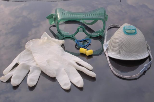 Τα γάντια χρησιμοποιούνται για την παρασκευή διαλύματος από προστατευτικό εξοπλισμό. Κατά τον ψεκασμό μεμονωμένων φυτών ή μικρών κρεβατιών, χρειάζονται γυαλιά και αναπνευστική συσκευή. Όταν εργάζεστε σε μια μεγάλη φυτεία, είναι καλύτερο να φοράτε προστατευτικά ρούχα.