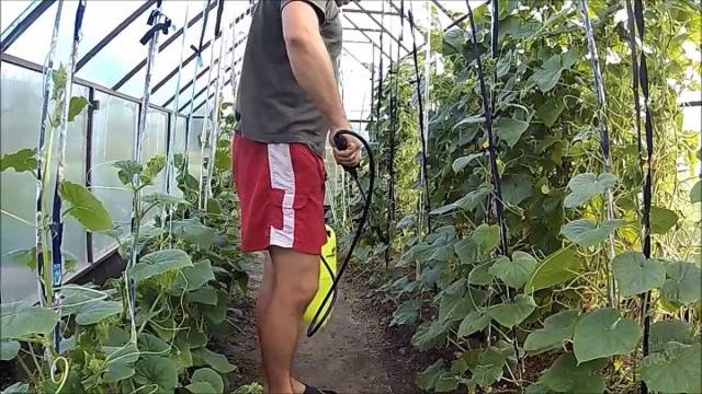 - Το ακάρεο της αράχνης δεν αρέσει σε υψηλές θερμοκρασίες και υψηλή υγρασία, αλλά τέτοιες συνθήκες είναι κατάλληλες για τα αγγούρια. Δεν είναι δύσκολο να αυξηθεί η υγρασία · αρκεί να ψεκάζουμε τα φυτά αρκετές φορές την ημέρα.
