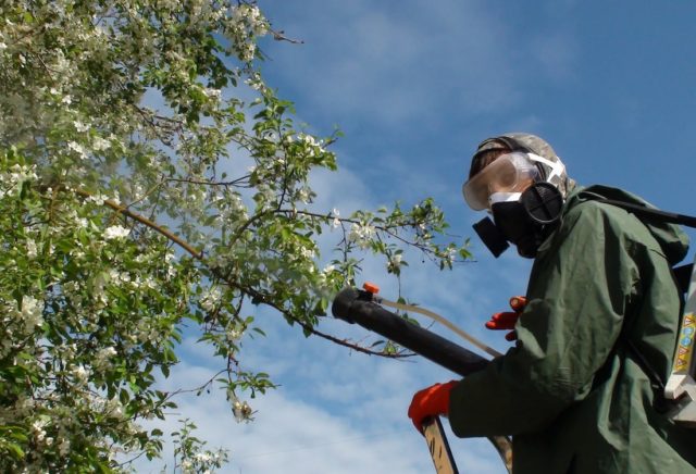 - Όταν ψεκάζετε δέντρα, φοράτε γυαλιά και καλύψτε το στόμα και τη μύτη σας με έναν επίδεσμο γάζας.