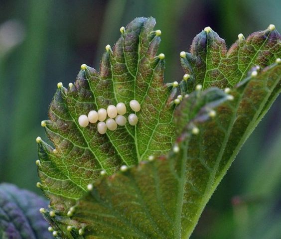 Μπορείτε επίσης να βρείτε το σκώρο φραγκοστάφυλου το βράδυ ή τη νύχτα. Όμορφες πεταλούδες μικρού μεγέθους θα πετάξουν πάνω από το φυτό, οι οποίες κάνουν μαζική ωοτοκία στην εσωτερική πλευρά του φύλλου.