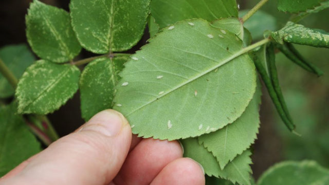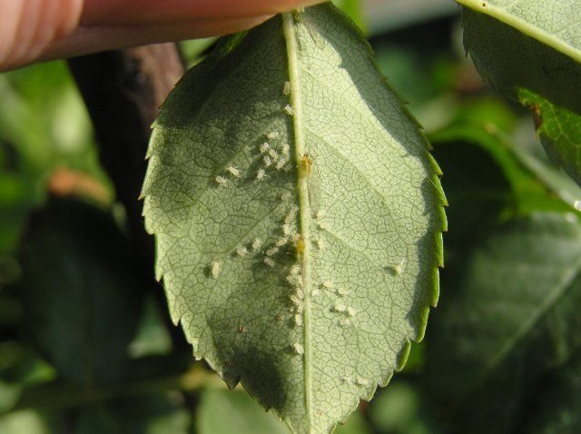 Στα πρώτα στάδια της προσβολής, οι αφίδες στα τριαντάφυλλα είναι σχεδόν αόρατες. Η φωτογραφία δείχνει πόσο μικρά είναι αυτά τα παράσιτα.
