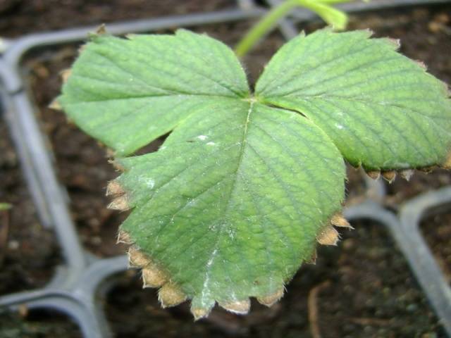 Γεια σας. Αγόρασα σπορόφυτα φράουλας σε γλάστρες από τη γεωργική εταιρεία Flos στα μέσα Ιουλίου. Στις αρχές Αυγούστου, τα παλιά φύλλα των δενδρυλλίων άρχισαν να γίνονται κόκκινα και ανάποδα. Τι είναι αυτό?