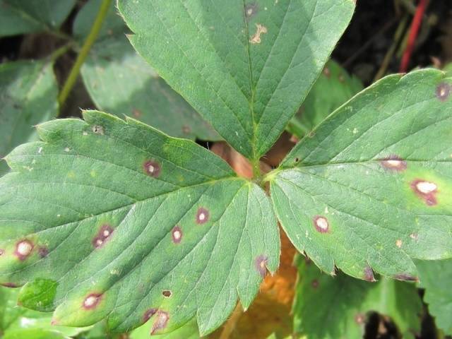 Σταδιακά, οι κηλίδες συγχωνεύονται σε ένα μεγάλο σημείο, το μέσο του οποίου φωτίζει, και ως αποτέλεσμα είναι διάτρητο - το φύλλο γίνεται διάτρητο. Ως αποτέλεσμα της δραστηριότητας αυτού του μύκητα, χάνεται έως και το ήμισυ της πράσινης μάζας των θάμνων, γεγονός που οδηγεί σε σημαντική μείωση της απόδοσης και επιδείνωση της γεύσης των φραουλών.