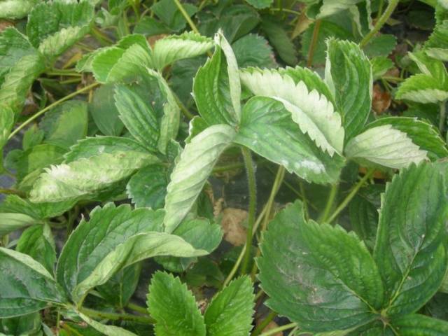 Αργότερα, οι κηλίδες από τα φύλλα της φράουλας μετακινούνται στους καρπούς της - τα μούρα γίνονται λευκά, καλυμμένα με μύκητα. Αυτές οι φράουλες δεν είναι βρώσιμες.