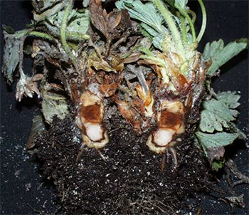 Τότε ολόκληρος ο θάμνος από τις ρίζες μέχρι την έξοδο γίνεται καφέ, οι ρίζες θα είναι εύθραυστες και εύθραυστες, άψυχες. Ως αποτέλεσμα, η απόδοση μειώνεται απότομα, επειδή δεν υπάρχει "χώρος διαβίωσης" στις φράουλες, ολόκληρος ο θάμνος μολύνεται.