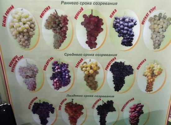 Η φωτογραφία δείχνει τις πιο δημοφιλείς ποικιλίες σταφυλιών με διαφορετικές περιόδους ωρίμανσης.