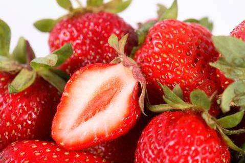 - Έξω, οι φράουλες αυτής της ποικιλίας είναι φωτεινές κόκκινες, αλλά στο εσωτερικό έχουν ροζ απόχρωση.