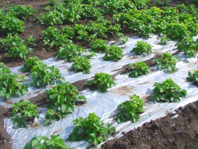 Για τη διατήρηση της υγρασίας και την προστασία των καλλιεργειών φράουλας από πένθιμα ενδύματα χήρας Συνιστάται να καλύψετε τα κλίτη με ένα στρώμα από άχυρο ή σανό. Η χρήση της μαύρης μεμβράνης δεν είναι πάντα λογική, καθώς μπορεί να προκαλέσει εστίες μυκητιασικών ασθενειών.