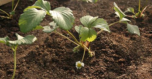 Τα οργανικά και ανόργανα λιπάσματα πρέπει να εφαρμόζονται πριν από τη φύτευση φραουλών. Ένα τετραγωνικό μέτρο του κήπου θα χρειαστεί περίπου 7-8 κιλά οργανικής ύλης. Μπορείτε επίσης να φτιάξετε ένα θρεπτικό διάλυμα με 50 γραμμάρια υπερφωσφορικού και 30 γραμμάρια θειικού καλίου.