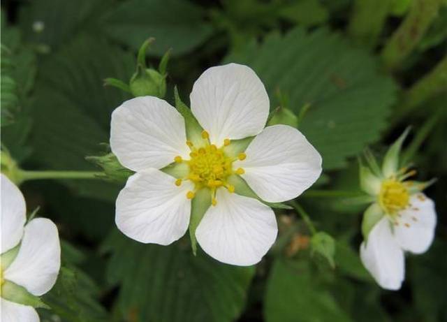 - Οι φράουλες, σύμφωνα με την περιγραφή και τις κριτικές των κηπουρών, διακρίνονται από παχιά μίσχους με αφθονία μεγάλων λευκών λουλουδιών με φωτεινές κίτρινες καρδιές. Αυξάνονται ελαφρώς πάνω από τα φύλλα. Καθώς χύνονται τα μούρα, οι μίσχοι κάμπτονται στο έδαφος.