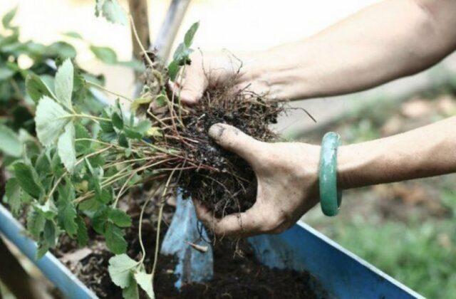 - Αναπαραγωγή κατά διαίρεση. Οι υπερβολικές φράουλες Marisol μπορούν να κοπούν σε 2-3 μέρη κατά μήκος του ριζώματος. Κάθε τμήμα με αναπτυγμένες διαδικασίες σίτισης και πολλά φύλλα μεταφέρεται σε έτοιμα νέα μέρη.Συμβουλή! Για τον πολλαπλασιασμό μουστάκι, συνιστάται να αφήσετε ελεύθερο χώρο μεταξύ των κρεβατιών εκ των προτέρων.