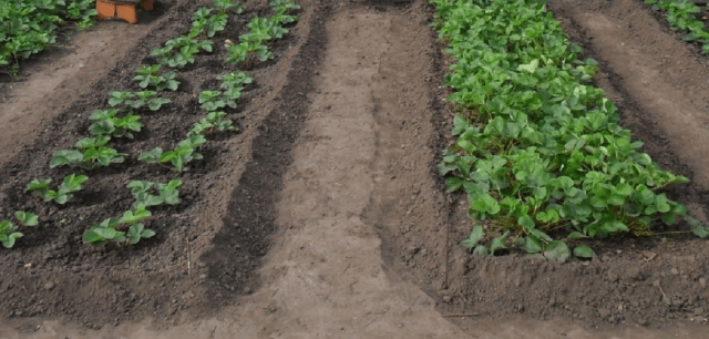 - Οι τρύπες φράουλας πρέπει να είναι ρηχές αλλά αρκετά μεγάλες για να φιλοξενήσουν τα ριζώματα.