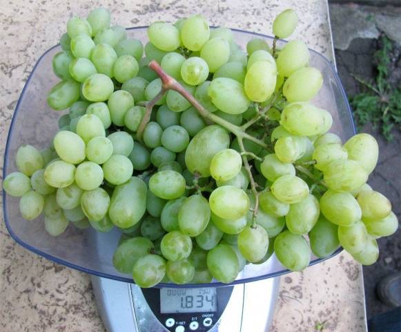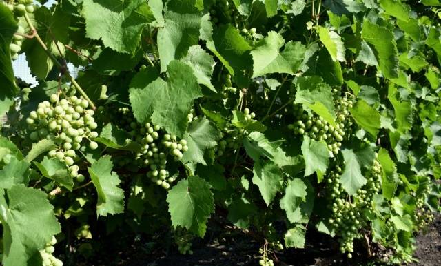 Η θέα ενός ισχυρού αμπέλου αυτής της ποικιλίας, που φέρει βαρύ πράσινο σμήνη, είναι αξιοθαύμαστη. Σε έναν έντονο θάμνο, τρία στρογγυλά πράσινα φύλλα, ελαφρώς τεμαχισμένα. Παρά τον λειτουργικά θηλυκό τύπο λουλουδιού, η επικονίαση είναι επιτυχής.