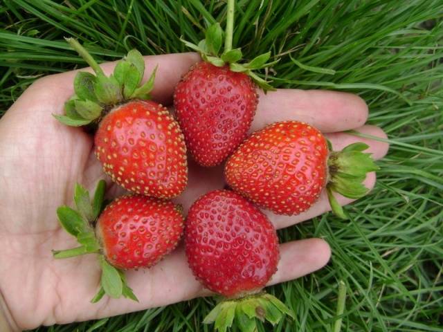 - Οι φράουλες πρέπει να είναι μεγάλες. Το μούρο μπορεί να ονομαστεί κατά βάρος στην περιοχή από 50-60 γραμμάρια. Τέτοια μεγέθη φράουλας παρέχουν υψηλές αποδόσεις, επειδή έως και ένα κιλό φρούτων μπορούν να αφαιρεθούν από κάθε μεγάλο καρπό. Ναι, και ένα τέτοιο μούρο φαίνεται πολύ ευπαρουσίαστο, σίγουρα θα θέλουν να το αγοράσουν (αυτή η ερώτηση ανησυχεί συνήθως τους κατοίκους του καλοκαιριού που καλλιεργούν φρούτα προς πώληση).
