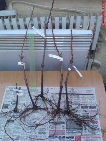 Εμπρός φύτευση μίσχου πρέπει να τοποθετηθεί σε νερό. Μπορείτε επίσης να τοποθετήσετε το ρίζωμα σε υγρό έδαφος. Σε αυτήν τη μορφή, το δενδρύλλιο σταφυλιών πρέπει να σταθεί μέχρι να αναπτυχθεί το ριζικό σύστημα και η πράσινη μάζα να ανθίσει λίγο.