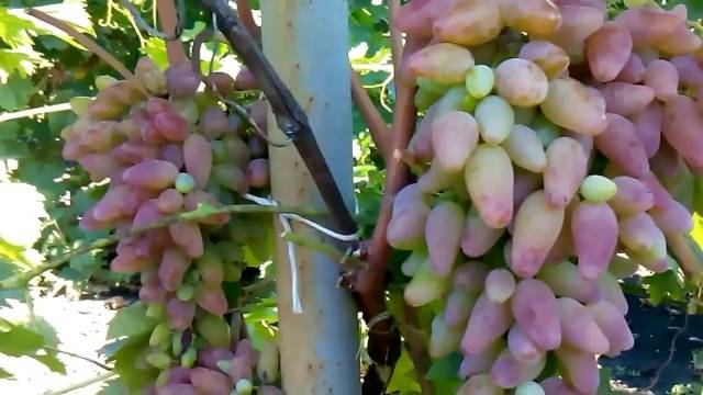 - Ροζ σταφύλια. Στον ήλιο, μπορεί να αποκτήσει ένα λιλά χρώμα. Αυτός ο τύπος σταφυλιού εμφανίζεται στην παραπάνω φωτογραφία.