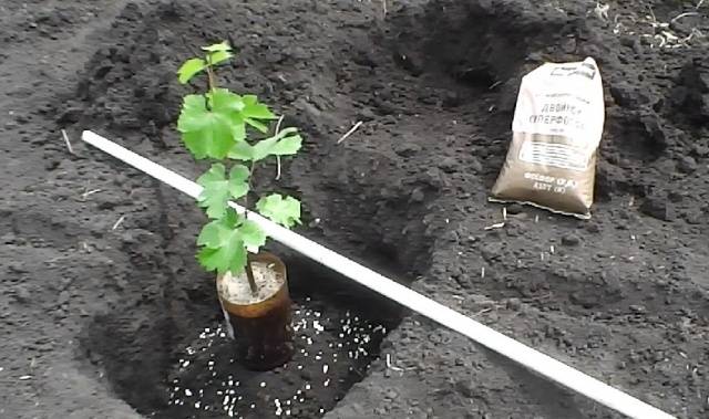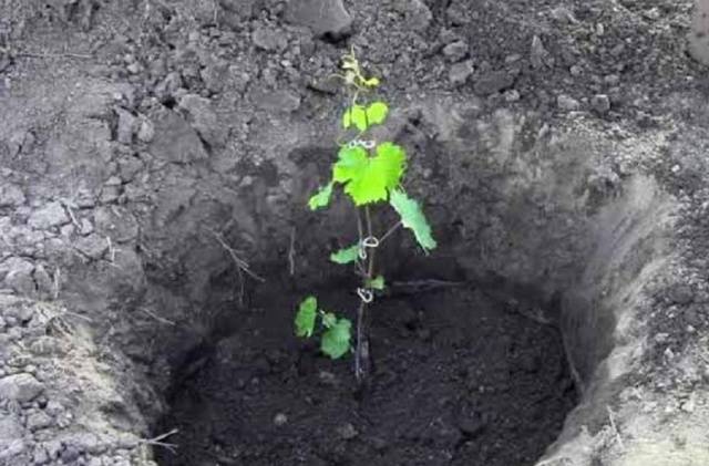 - Μετά από μια εβδομάδα, τοποθετήστε το σπορόφυτο σταφυλιών στην τρύπα, καλύψτε το με τη γη και το νερό άφθονο. Στη συνέχεια, σάπια.