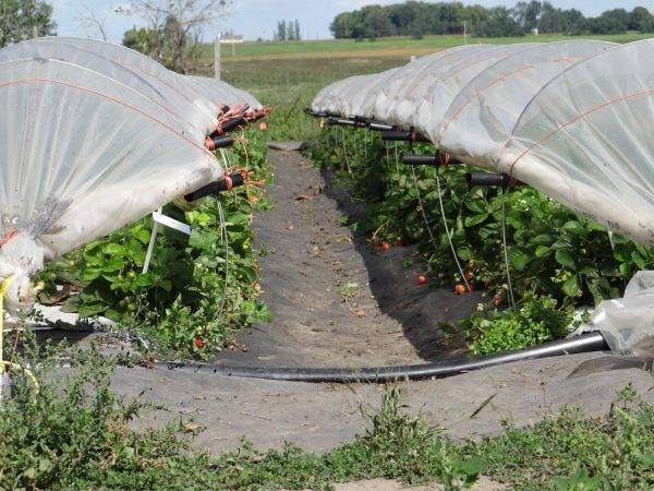 Κατά τη διάρκεια της ανθοφορίας, οι υπόλοιπες φράουλες φοβούνται τους βραχυπρόθεσμους παγετούς. Καταφύγια θερμοκηπίου από αγροΐνες βοηθούν στην προστασία των φυτεύσεων. Μπορείτε επίσης να χρησιμοποιήσετε κανονικές διαφάνειες.