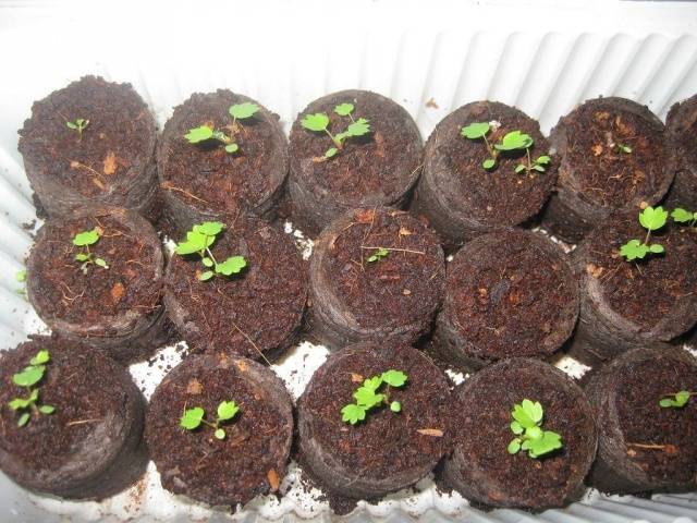 Είναι βολικό να σπέρνετε μικρούς σπόρους φράουλας κήπου σε δισκία τύρφης-χούμους. Πρώτα εμποτίζονται σε ζεστό νερό για να διογκωθούν. Στη συνέχεια, ένας στρωματοποιημένος σπόρος τοποθετείται στο κέντρο του δισκίου.