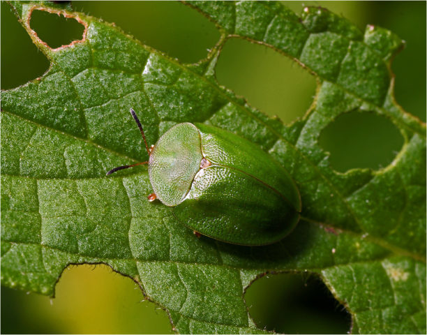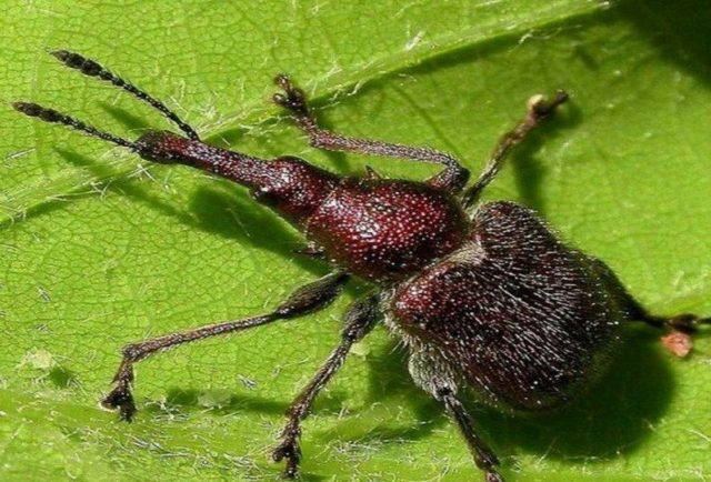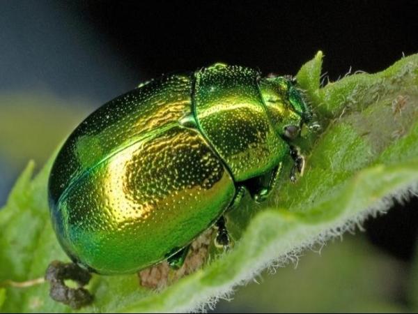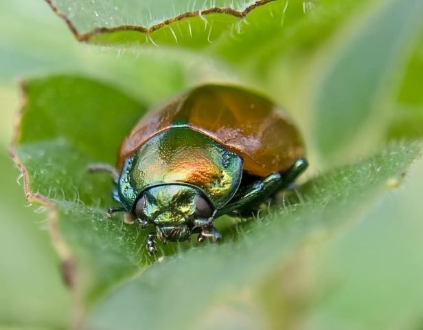 - Πράσινο ασπίδα σκαθάρι. Γκρινίζει τις άκρες των φύλλων και κάνει τρύπες σε αυτές.