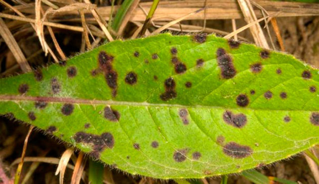 - Septoria (εντοπισμός). Οι πλάκες των φύλλων καλύπτονται με μαύρες κηλίδες σε μέγεθος μικρότερο από 1 cm με σκούρες ζάντες.