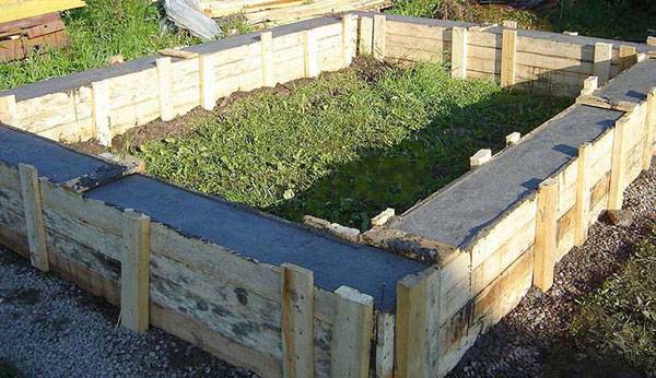 - Ο πυθμένας της τάφρου καλύπτεται με άμμο και θρυμματισμένη πέτρα πάχους 15 εκ. Ο ξυλότυπος ισούται με το ύψος του υπογείου συλλέγεται από τις σανίδες. Τοποθετείται στην κορυφή κατά μήκος της περιμέτρου της τάφρου και τα κάτω και τα πλευρικά τοιχώματα καλύπτονται με υλικό στέγης. Εάν το ύψος του ξυλότυπου είναι μεγαλύτερο από 50 cm, τα πλευρικά τοιχώματα ενισχύονται με προσωρινά στηρίγματα. Ιδιαίτερη προσοχή πρέπει να δοθεί στην ενίσχυση των γωνιών.