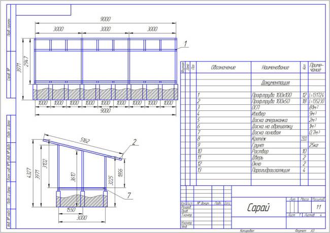 Πριν χτίσετε ένα υπόστεγο με τα χέρια σας, πρέπει να σχεδιάσετε ένα σχέδιο. Το διάγραμμα δείχνει τις διαστάσεις του μελλοντικού κτηρίου. Αυτό θα σας βοηθήσει να υπολογίσετε την απαιτούμενη ποσότητα υλικού. Ωστόσο, ακόμη και πριν από την εκπόνηση ενός έργου, πρέπει να αποφασίσετε για την κατεύθυνση στόχου του αχυρώνα. Για παράδειγμα, μια κατασκευή κεφαλαίου απαιτεί περισσότερες επενδύσεις κεφαλαίου και εργατικό κόστος και ένα προσωρινό μπλοκ χρησιμότητας μπορεί να συναρμολογηθεί γρήγορα από απορρίμματα υλικών.