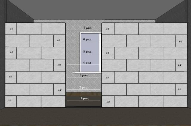 Όταν και οι τέσσερις γωνίες είναι επίπεδες και υδραυλικές, ένα σχοινί τραβιέται μεταξύ τους. Η τοποθέτηση τοίχων συνεχίζεται κατά μήκος του κορδονιού από τις γωνίες.Είναι σημαντικό να παρατηρήσετε το ντύσιμο των ραφών στις σειρές, διαφορετικά η δομή θα αποδειχθεί ασταθής.
