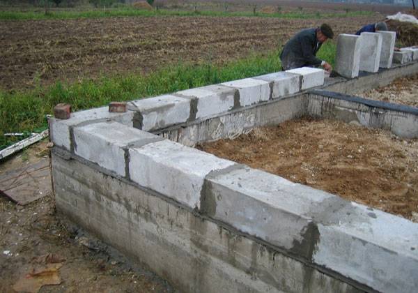 Για την κατασκευή βάσεων για μπλοκ χρησιμότητας πλαισίου, μπορείτε να χρησιμοποιήσετε κοίλα μπλοκ από σκυρόδεμα. Γι 'αυτούς, ανοίγονται τρύπες σε ένα βήμα 1 μ. Οι οδηγίες βήμα προς βήμα για την τοποθέτηση μπλοκ δεν διαφέρουν από την εργασία με τούβλα. Μόνο τα κενά στα μπλοκ κατά τη διάρκεια της τοιχοποιίας πρέπει να γεμιστούν με κονίαμα.