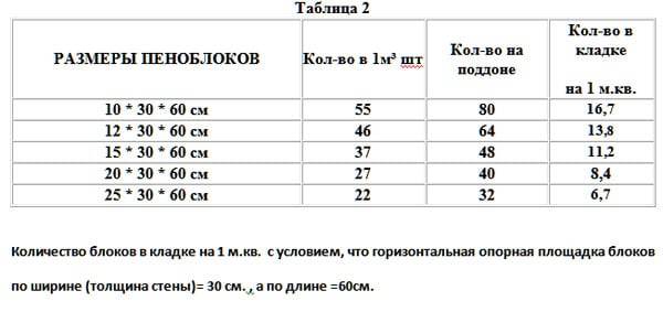 Για να υπολογίσετε τον απαιτούμενο αριθμό μπλοκ αφρού για το υπόστεγο σας, πρέπει να γνωρίζετε το μέγεθός τους. Τα δεδομένα εμφανίζονται στον πίνακα.