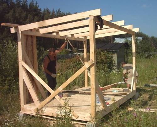 Αρχικά, ας δούμε την κατασκευή ενός αχυρώνα χρησιμοποιώντας τεχνολογία πλαισίου. Ακόμα και ένα άτομο μπορεί να χειριστεί τέτοια εργασία.