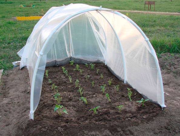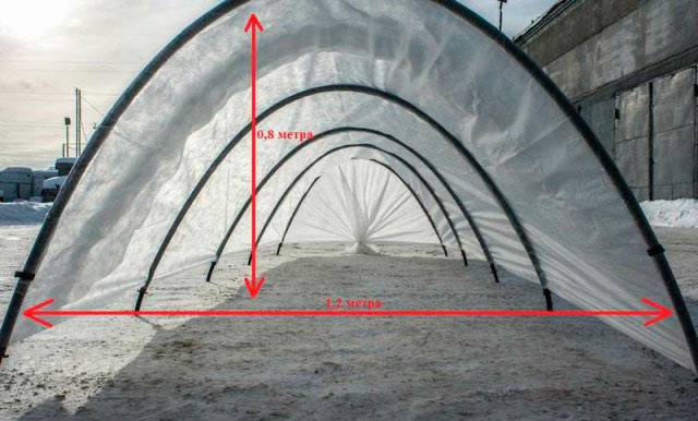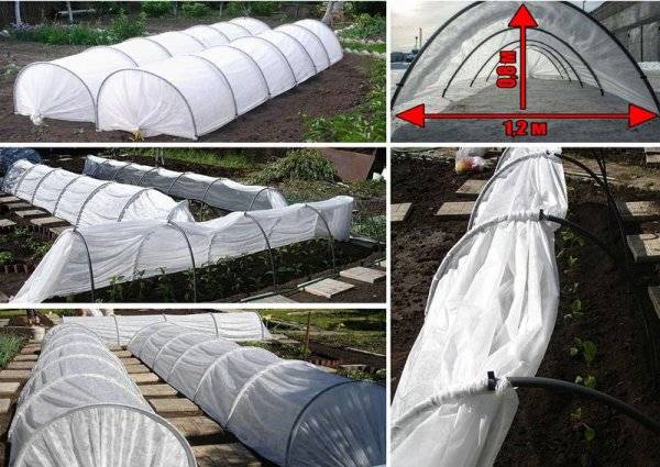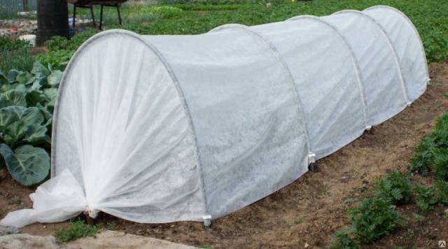 - Χρησιμοποιείται ως πανί κάλυψης μη υφασμένα υφάσματα spunbond. Το χαρακτηριστικό του είναι μεγαλύτερη διάρκεια ζωής, σε αντίθεση με το πολυαιθυλένιο. Η πορώδης δομή του spunbond επιτρέπει τη διέλευση υγρασίας, αέρα και ηλιακού φωτός. Ταυτόχρονα, το μη υφασμένο υλικό προστατεύει τα φυτά από τις ακραίες θερμοκρασίες. Οι τσέπες είναι ραμμένες στο κομμάτι του υφάσματος επικάλυψης, το πλάτος τους είναι ελαφρώς μεγαλύτερο από τη διάμετρο του σωλήνα. Οι καμάρες εισάγονται στις τσέπες, οι οποίες σας επιτρέπουν να κρατάτε σταθερά το spunbond στο πλαίσιο του θερμοκηπίου.