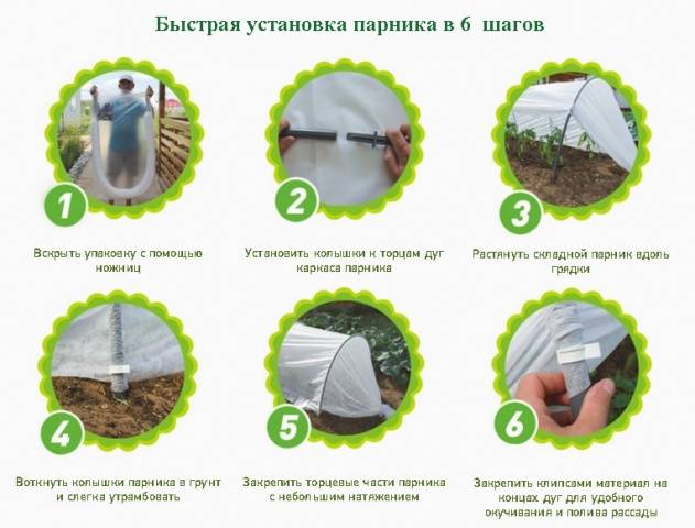 - Το θερμοκήπιο πωλείται σε συσκευασία. Τις περισσότερες φορές είναι μια πλαστική σακούλα. Πριν από την εγκατάσταση, η δομή αφαιρείται από τη συσκευασία, τεντώνεται σε όλο το μήκος του κρεβατιού και οι πτυχώσεις στον καμβά αφήνονται να ευθυγραμμιστούν.