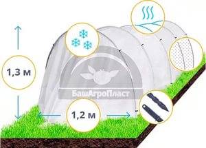 Η εταιρεία Neftekamsk BashAgroPlast παράγει θερμοκήπια Snowdrop από πλαστική ύλη τόξα ραμμένα στο ύφασμα επικάλυψης. Το προϊόν χαρακτηρίζεται από ελαφρύ, συμπαγές μέγεθος, απλή συναρμολόγηση.