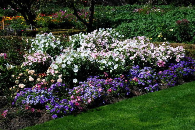 Σχεδόν όλα τα λουλούδια συνδυάζονται με πολυετή τουαλέτα. Το κύριο πράγμα είναι ότι δεν είναι πολύ χαμηλά, διαφορετικά τα φυτά θα χαθούν στο πλαίσιο ενός ψηλού θάμνου. Πρέπει επίσης να επιλέξετε τον σωστό συνδυασμό χρωμάτων: για παράδειγμα, λευκό με ροζ, λιλά με κόκκινο.