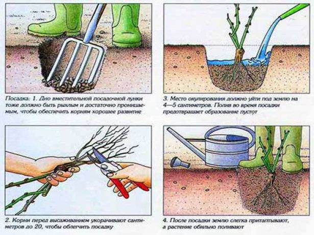 Φυτέψτε το δενδρύλλιο έτσι ώστε το κολάρο της ρίζας να είναι επίπεδο με το έδαφος. Υπάρχουν όμως τριαντάφυλλα που έχουν εμβολιαστεί. Σε αυτήν την περίπτωση, ο θάμνος πρέπει να φυτευτεί πιο βαθιά, περισσότερο κάλυψη με τη γη. Είναι καλύτερα να κόψετε όλα τα λουλούδια και τα μπουμπούκια στο θάμνο. Είναι απαραίτητο να δοθεί στο φυτό η ευκαιρία να δαπανήσει ενέργεια όχι για το σχηματισμό ωοθήκης ή ανθοφορίας, αλλά για το σχηματισμό ενός καλού, ισχυρού ριζικού συστήματος.