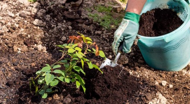 Η τρύπα φύτευσης πρέπει να είναι μεγαλύτερη από το ριζικό σύστημα του τριαντάφυλλου. Το φυτό δεν του αρέσει η στασιμότητα της υγρασίας. Εάν τα υπόγεια ύδατα ανεβαίνουν ψηλά, κάντε καλή αποστράγγιση. Ετοιμάστε ένα εύφορο μείγμα: άμμο, τύρφη και χλοοτάπητα σε περίπου ίσες ποσότητες. Κοιμηθείτε στο κάτω μέρος του λάκκου, ενώ σχηματίζετε ένα είδος ανάχωμα.