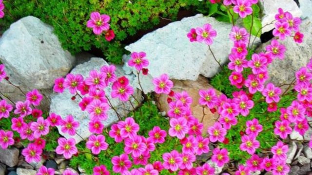 Το χαλί Saxifrage Purple προτιμά να μεγαλώνει σε ελαφριές περιοχές