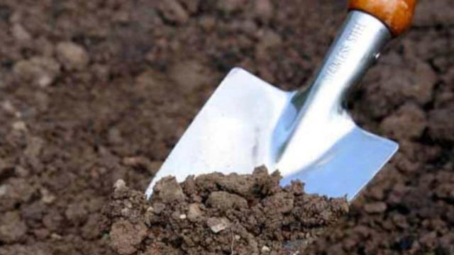 - Ρίξτε λίγο πάνω από την άκρη της τρύπας φύτευσης.