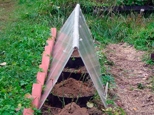 Τα κλαδιά ερυθρελάτης τοποθετούνται κάτω από τους μίσχους και στην κορυφή, η ζώνη άκρωσης καλύπτεται με ξηρή άμμο. Αψίδες ή άλλο πλαίσιο τοποθετούνται πάνω από το εργοστάσιο και καλύπτονται με μεμβράνη. Για καταφύγιο, μην χρησιμοποιείτε μαύρο υλικό έτσι ώστε τα φυτά να μην υπερθερμαίνονται. Το υλικό κάλυψης είναι σταθερό, δημιουργείται ένα κενό από κάτω για τη διέλευση του αέρα.