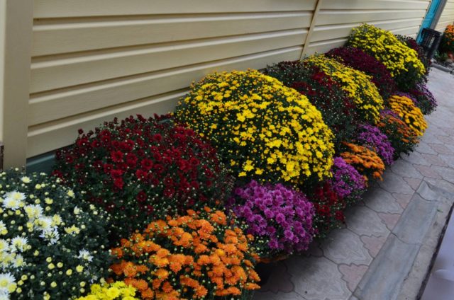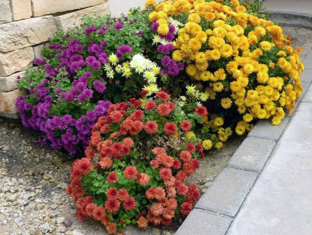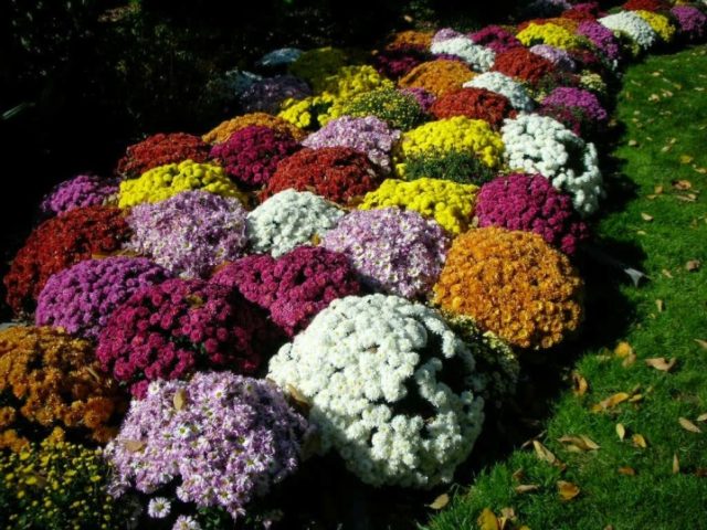Τα πολύχρωμα σύνορα χρυσάνθεμων θάμνων φαίνονται υπέροχα