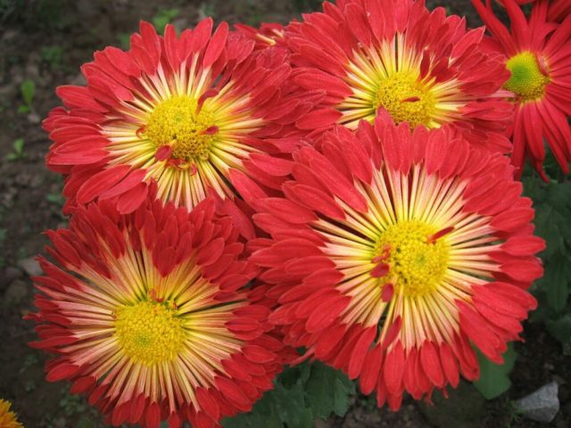 Το ύψος του θάμνου αυτών των χρυσάνθεμων μπορεί να φτάσει τα 0,7-0,9 μ. Οι ταξιανθίες με πέταλα σε σχήμα κουταλιού έχουν διάμετρο έως 10 cm. Η ανθοφορία ξεκινά τον Αύγουστο και τελειώνει στα τέλη Σεπτεμβρίου. Οι ταξιανθίες αποτελούνται από κίτρινα, κόκκινα ή πορτοκαλί πέταλα, το κεντρικό μέρος είναι κιτρινωπό-πράσινο.