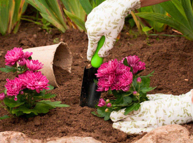 Για τη φύτευση χρυσάνθεμων, είναι βολικό να χρησιμοποιείτε μια μικρή μεταλλική σπάτουλα